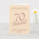 Elégant 70 et Fabulous Ornament 70th Birthday Card. 70 et texte fabuleux en écriture dorée tendance et un ornement élégant sur arrière - plan champagne. Personnalisez-le avec votre nom et votre âge, et faites une carte d'anniversaire personnalisée et élégante. Ajoutez votre note d'anniversaire à l'intérieur de la carte ou effacez-la.