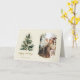 Cet élégant design de vacances dispose d'un modèle photo unique en forme de découpe unique, accueil personnalisable et moderne style aquarelle sapin de Noël avec baubles dorés sur un arrière - plan bouffant. L'intérieur comporte un modèle photo supplémentaire et des champs de texte modifiables.