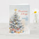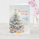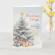 Un élégant sapin de Noël fait honneur à cette belle carte de vacances pliée. De jolies billes d'or mettent en valeur le pin enneigé et une étoile brillante est le dessus sur cette aquarelle vintage. Des cadeaux et des forfaits aux couleurs joliment assorties sont tout autour de la base de l'arbre. L'accueil sur le devant de la carte est "Tidings de Noël", mais vous pouvez changer cela à une autre salutation saisonnière de votre choix, si vous préférez. A l'intérieur, également en typographie rouge et bleue, sont des exemples de bons sentiments et de noms "de". Assurez-vous de les modifier selon vos choix, ainsi que le nom de famille et la date sur le devant.