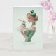 Carte Elegant Blonde in Green w/ Pretty Bunny BDay Card