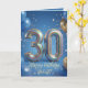 Celebrate a milestone 30th birthday in style with this elegant and festive greeting card. Featuring a rich blue background decorated with realistic gold and blue party balloons and dazzling gold confetti, this design is perfect for making an impact. The centerpiece is a stunning, 3D sparkly multi-colored balloon typography showcasing the number "30". Easily personalize the elegant gold script on the front with the recipient's name, and customize the heartfelt, inspirational message inside to make it truly special. Perfect for a son, brother, husband, or friend celebrating their big 3-0.