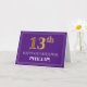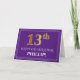 L'avant de cette carte de voeux luxueuse et respectable à thème d'anniversaire comporte un grand numéro ordinal "13ème" ayant une apparence imitation/faux or inspiré, le message "HAPPY 13ème anniversaire", un nom de destinataire personnalisable, et un motif de bordure constitué de lignes fines, sur un arrière - plan de couleur violette. L'intérieur comporte un message d'anniversaire personnalisé, ou pourrait être effacé et laissé vide si un message doit être écrit à la main à la place. Une carte de voeux d’anniversaire personnalisée comme celle-ci pourrait être utilisée pour souligner le treizième anniversaire de quelqu’un. [~Z0000484]