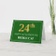Carte Elégant Faux Gold Look 24e anniversaire, nom (vert