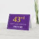 Carte Elégant Faux Gold Look 43ème anniversaire, nom; vi
