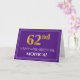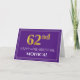 Carte Elégant Faux Gold Look 62e anniversaire, nom; viol
