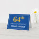 Carte Elégant Faux Gold Look 64e anniversaire, nom (bleu
