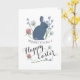 Carte Elégant Fleur sauvage et lapin gris, Pâques