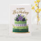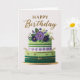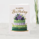 Carte Elegant Floral Green Purple Gold Birthday Cake