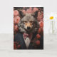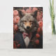 Un loup élégant en costume avec des fleurs roses vierges à l'intérieur de toutes les occasions carte de voeux