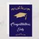 Elégante Golden Félicitations Graduate Graduate Card. Carte de graduation avec capuchon de graduation, script tendance et ornements or. Félicitations et nom du diplômé sur le devant - personnalisez avec votre nom. Personnalisez le texte à l'intérieur de la carte ou effacez-le.