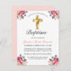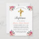 Carte Élégant Peach Rose Floral Gold Cross Baptism