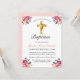Célébrez le Baptême de votre fille avec vos amis et votre famille en les invitant avec cette élégante invitation au Baptême d'or et de fleurs roses. Ce design présente une belle croix d'or avec un cadre fleuri contre un simple arrière - plan blanc. Le dos de la carte est d'une jolie couleur rose. Customisez le texte et la police à votre convenance. Autres polices et styles disponibles. Veuillez nous contacter pour toute demande spéciale et nous serons heureux de vous aider.