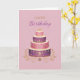 A beautifully detailed birthday card featuring a vibrant pink and purple tiered cake adorned with intricate patterns and gold accents. Set against a soft blush background with elegant “Happy Birthday” lettering, this design creates a rich and celebratory feel—perfect for a stylish and memorable birthday.