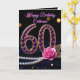 Celebrate her milestone 60th birthday with a touch of luxury and high-end glamour! This sophisticated design features a stunning, jewel-encrusted "60" in vibrant purple amethyst and diamonds, accented by a romantic pink rose, shimmering gold leaves, and a classic string of white pearls against a sleek black background.