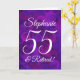 Elegant Purple 55 et Retraité Happy Retirement Card C'est une carte spéciale élégante de retraite violet art spécialement conçue pour vos amis qui ont 55 ans et prennent leur retraite! Personnalisez cette carte avec leur nom et tous les noms de leurs collègues à l'intérieur. Leur nom sera également ajouté à l'intérieur de la carte et vous pouvez customiser l'intérieur avec votre ou vos nom(s) comme donateur/donneur de carte. Associez cette carte avec une tasse de retraite ou des cadeaux de notre magasin! Votre ami adorera cette carte de retraite élégamment conçue.