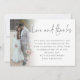 Élégant Script 6 Photos Mariage Love Thanks. L'amour et les remerciements sont dans un style manuscrit. Personnalisez facilement le reste du texte à vos propres détails et remplacez les six exemples de photos à l'avant et à l'arrière par les vôtres en tant que garde-manger pour vos invités.