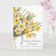 This elegant birthday card features a watercolor bouquet of daffodils and jonquils, the official March birth flowers, symbolizing renewal, joy, hope, and new beginnings.