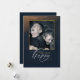 Vos amis et votre famille adoreront recevoir cette carte de Nouvel An. Le design intègre des tons de saphir de minuit et d'or et peut être personnalisé en ajoutant votre photo préférée et les noms des membres de la famille.