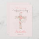 Elégante carte à plat pour confirmation avec une croix florale sur fond rose vif. Personnalisez le front avec le texte, le nom et la date...à l'intérieur avec texte.