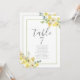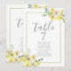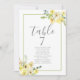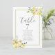 Des fleurs jaunes délicates peintes à l'aquarelle ornent cette charmante carte de numéro de table de mariage en après-midi d'été avec carte de plan de table. La décoration de mariage de jardin est accentuée d'une bordure rectangulaire vert sauge doux et de feuilles botaniques sous les pivoines ensoleillées élégantes. Floral et léger, parfait pour une cérémonie en plein air.
