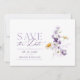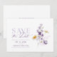 Annoncez votre jour spécial avec cette carte élégante de "Pré-Réservation" présentant de délicates fleurs aquarelles dans des tons violets et ivoire. Parfaite pour les thèmes de mariage romantiques et intemporels. Détails personnalisables.