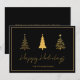 Carte professionnelle élégante Joyeuses Fêtes noire. Avec des arbres de Noël minimalistes modernes. Faites glisser la carte pour personnaliser le texte. Également disponible en téléchargement numérique.