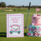 Cet objet unique représente une voiturette de golf décorée pour un anniversaire de femme ! Cette voiturette de golf aux couleurs vives transporte des cadeaux, des gâteaux et du champagne pétillant. C'est une carte amusante de 27ème anniversaire à donner à quelqu'un qui vit et respire le golf!