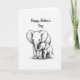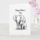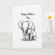 This card shows two elephants in a monochrome drawing, with a tall adult standing close to a smaller youngster on a bright white background. The adult’s wide ears and sturdy outline feel calm and protective, while the little one leans in as if enjoying the safety of being near. Fine pencil-like lines and soft gray shading give their skin a textured, charcoal-on-paper look. Their trunks reach toward each other and meet gently in the center, like a quiet kiss or a reassuring touch ❤️. Above them, the words “Happy Mother’s Day” sit near the top, written in flowing dark gray lettering that echoes the sketchy linework. The open space around the pair keeps the focus on their closeness, and the soft shadows under their bodies add depth without adding extra color 🌼. The adult elephant’s trunk curves downward in a smooth arc as the young elephant’s trunk lifts up to meet it.