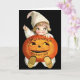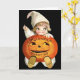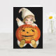 Une carte vintage avec du charme de Halloween comportant un enfant en bas âge mignon avec un Jack O'Lantern, peint par l'illustrateur américain/créateur publicitaire Ellen Hattie Clapsaddle.