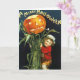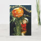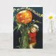Une autre carte vintage avec du charme de Halloween comportant un garçon avec un Jack O'Lantern sur des cornstalks, peints par l'illustrateur américain/créateur publicitaire Ellen Hattie Clapsaddle.