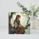 A cute elven girl sitting on a tree branch in a vintage dress blank card.