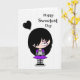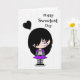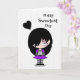 Mignonne fille émo aux cheveux noirs et robe violette pour la carte Sweetest Day. Le coeur noir de l'air contribue au design branché. Design © 2015 Julia Bryant.
