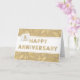 Il s'agit d'une carte de 5e anniversaire d'employé neutre avec un design de feuille d'effet de feuille d'or délicatement contrastante dans l'arrière - plan. Le design présente le texte central 'HAPPY ANNIVERSARY' dans une police à effet superposé avec des lignes diagonales à effet de feuille d'or sur toutes les autres lettres. Le nombre d'années est écrit sur une note blanche off et lavi rectangle style ruban, vers le haut et vers la gauche du texte central. Veuillez noter que les effets 3D et doré sont numériquement simulés dans l'illustration, aucun élément 3D ou feuille d'or ne sera utilisé dans la fabrication de cette carte. La carte imprimée sera complètement plate. Conception par Natalie Kinnear