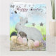 Célébrez la joie de Pâques avec cette carte de vœux de Pâques fantaisiste Boganhues. Le design présente un fond printanier pastel doux avec un lapin de Pâques charmant à la texture scintillante, entouré d'un nid douillet d'œufs décoratifs à motifs écossais, pois, dentelle et pastel. Des étoiles argentées scintillantes et un message festif « Joyeuses Pâques » ajoutent une touche d'éclat et de magie, ce qui en fait un élément idéal pour envoyer des vœux chaleureux de vacances. Des accents de fleurs de lavande et des détails de foin apportent une sensation naturelle et rustique qui se marie parfaitement avec le thème ludique de Pâques.
