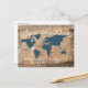 Carte postale "Save the Date" avec une carte du monde vintage antique sur fond de bois pour un mariage sur le thème du voyage de destination. Déplacez le cœur vers votre lieu de mariage ou de réception et ajoutez votre texte pour concevoir votre "Save the Date" de mariage rustique sur la plage.