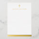 Papeterie simple et élégante avec une vraie croix en feuille métallisée et le nom en dessous dans une police masculine. En bas se trouve une bordure en feuille métallisée. Choisissez entre une feuille métallisée de couleur or rose, or ou argent.