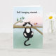 Une carte mignonne pour faire savoir à quelqu'un que vous pensez à eux. Un drôle de chat noir et blanc est suspendu à une branche d'arbre. L'arrière - plan a un look aquarelle pour améliorer le soin doux. Quand vous êtes juste en train de penser à quelqu'un, c'est la carte parfaite pour le faire savoir !