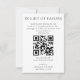 Voici notre carte mariage exquise ! Conçu avec une typographie minimaliste créant un look sophistiqué et intemporel, cette carte enchanteresse porte un message sincère. Invitant chaleureusement vos invités à prendre part à votre initiative "Au lieu de Faveurs", il symbolise l'importance de rendre en retour. Découvrez le mélange parfait d'élégance intemporelle et de technologie de pointe. Notre carte intègre un code QR personnalisé, vous permettant de créer une expérience unique et interactive. Entrez simplement l'URL de votre code QR, et regardez vos invités immergés dans l'impact de votre cause choisie. L'utilisation d'un code QR sur une carte "au lieu d'une carte de faveurs" peut varier en fonction de vos intentions et objectifs spécifiques. Voici quelques objectifs communs pour l'utilisation d'un code QR dans ce contexte : 1- Fournissez des informations : Avec une simple analyse, vos invités peuvent accéder à des détails supplémentaires sur la cause que vous supportez. Découvrez sa mission, comprenez l'impact qu'elle engendre et apprenez comment leurs contributions seront utilisées. Laissez-les se lancer dans un voyage de connaissance et d'inspiration. 2- Diriger les invités vers une page de don : Grâce à la puissance du code QR, les invités peuvent contribuer de manière transparente à votre organisme de bienfaisance ou à votre cause. En établissant un lien direct vers une page de don, il simplifie le processus et leur permet de faire une différence significative. 3- Partagez des histoires ou des témoignages : Plongez dans les récits personnels qui éclairent l'importance de votre cause. Liez le code QR à des vidéos ou des sites web présentant des histoires touchantes, des témoignages sincères et des expériences inspirantes liées à la cause que vous soutenez. Que leurs coeurs soient bougés et leurs esprits élevés. Tous les styles, couleurs et tailles de texte peuvent être modifiés selon vos besoins. Si vous avez besoin d'aide ou d'articles correspondants, n'hésitez pas à me contacter.
