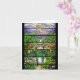 La reproduction vintage magnifique de fenêtre en verre teinté de Nouveau d'art de Tiffany d'un jardin impressionnant de l'eau est sur cette carte de note.