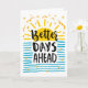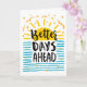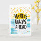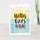 Encouragez quelqu'un qui traverse un divorce ou une séparation/rupture avec ce design de typographie au lettrage manuscrit joyeux avec le message en lettres cursives noires, "Des jours meilleurs à venir" entouré d'un soleil aquarelle avec des rayons et des étoiles et des vagues océaniques bleu clair.