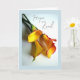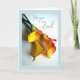 Espoir dans le Seigneur. Encouragement et pensée de vous, carte de voeux avec un message chrétien. Photographie de lys calla couleur mangue. verset biblique du Psaume 31:24 (LS) écrit dans la carte. Le message intérieur peut être modifié ou personnalisé. Copyright © Shoaff Ballanger Studios, 2024.