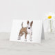 Le design anglais Bull Terrier présente un Bull Terrier blanc et brindle dans une pose classique de trois quarts.