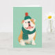 Send warm seasonal wishes with this English Bulldog holiday greeting, featuring a charming illustration inspired by the cozy nostalgia of mid-century holiday art from the 1950s and 1960s. Soft colors and a classic, slightly whimsical style give this card a timeless and joyful feel.