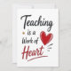 Un design de citation de professeur chaleureux et significatif mettant en vedette « Enseigner est une œuvre de cœur ». Ce message simple mais puissant met en évidence la passion et le dévouement derrière l'enseignement. Parfait pour exprimer votre appréciation de manière authentique et sincère, ce design fonctionne magnifiquement sur une variété de cadeaux réfléchis.