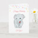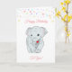 Anniversaire éléphant et étoiles multicolores sur carte blanche. Tous les textes peuvent être personnalisés.