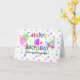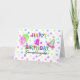 Une carte d'anniversaire de partie d'amusement pour une petite-fille de 1 an avec des confettis à l'arrière-plan dans des couleurs en pastel, le centre avec le "joyeux ęr anniversaire" coloré et la "petite-fille" dans le noir. De l'aile gauche des mots vous trouvez un ballon rose de point de polka et un ballon vert de point de polka, un casquette de partie sur la droite.