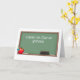 Un ęr jour de carte d'école avec un message sur un tableau indiquant "le ęr jour heureux de l'école !" avec une pomme sur en bas à gauche.