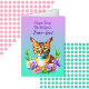 Cute ai aquarelle chat et fleurs en turquoise et violet carte d'anniversaire, Chat puns carte d'anniversaire pour ami. A l'intérieur, il y a une page de coloriage.