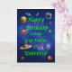 Donnez à votre père de pas d'amour de l'espace la meilleure carte d'anniversaire jamais! Dites à votre père pas à pas qu'il est le meilleur de l'univers. Une scène spatiale avec toutes les planètes et la lune s'alignant pour souhaiter un joyeux anniversaire.