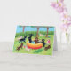 Carte de labradors été pour les fans du Labrador! Funny Labrador Retriever Pool et Summer Fun Painting. Black Labrador et Chocolate Labrador et Yellow Labrador sont tous peints sur le tableau. Des chiens joyeux et mignons du Labrador Retriever jouent dans le jardin avec un bassin pour enfants et de l'eau. Scène d'été colorée et joyeuse avec Labs. Peint par Naomi Ochiai du Japon.